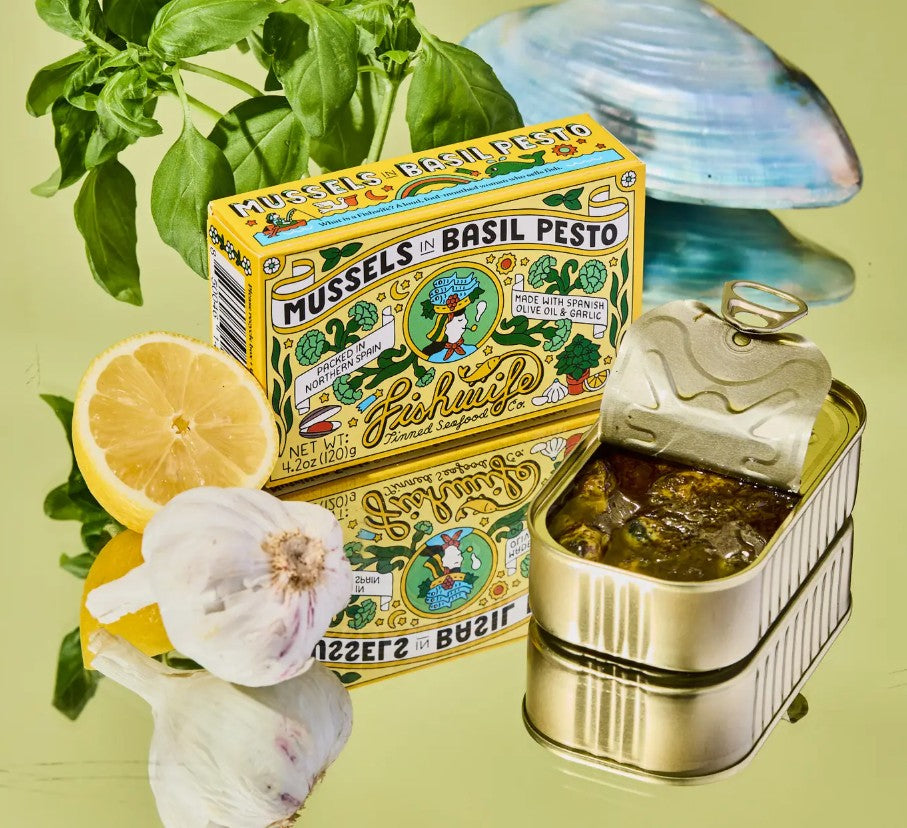 Fishwife is proud to unveil our newest tinned seafood offering: Mussels in Basil Pesto, thoughtfully sourced and artfully packed in partnership with heritage producers across Spain and Chile. These tins are a celebration of responsible aquaculture, artisanal canning traditions, and delicious, fresh, craveable flavor.