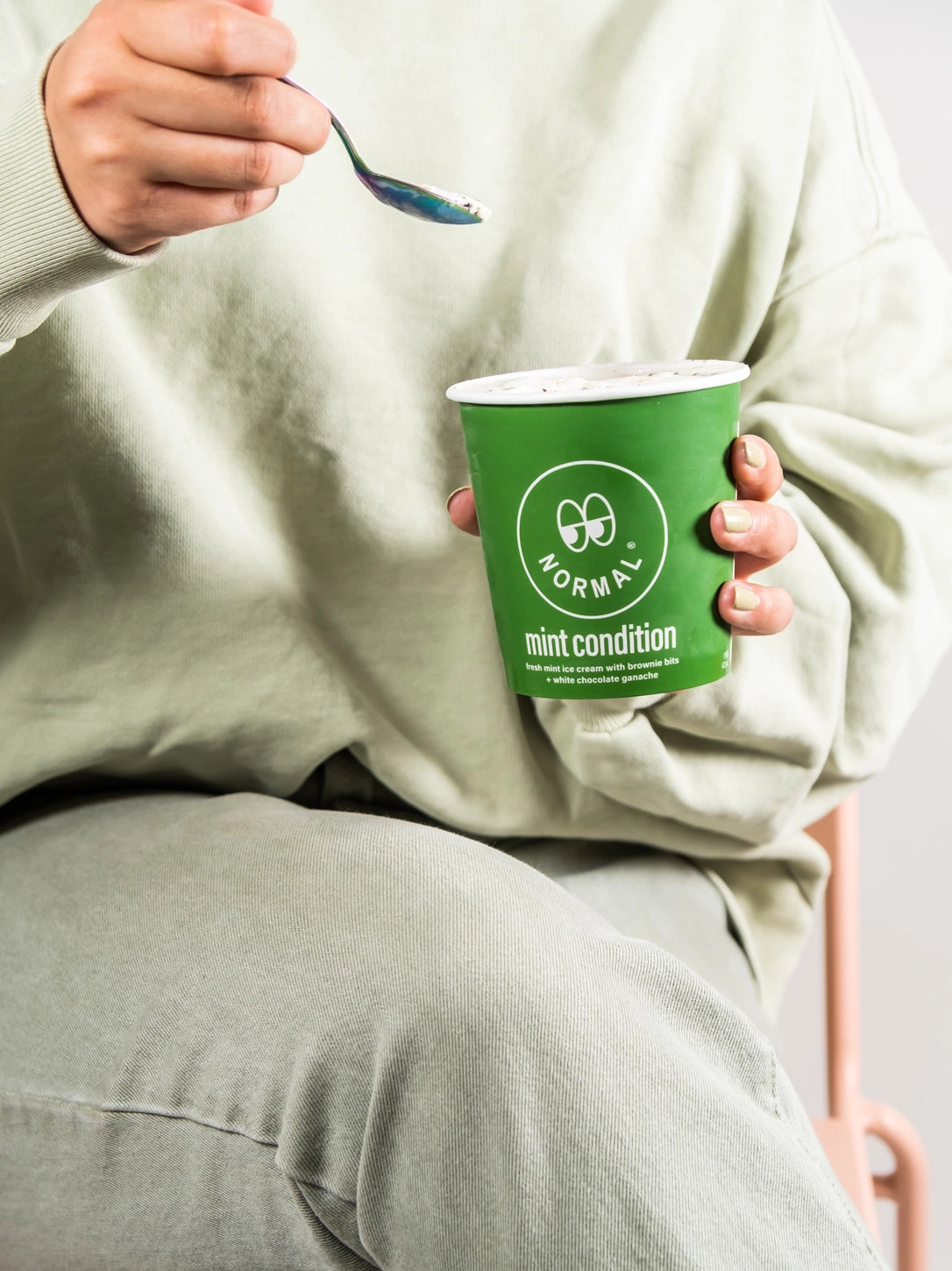 Fresh mint ice cream packed with chewy brownie bits and swirls of creamy white chocolate ganache. Cool, rich, and perfectly balanced between refreshing and indulgent.